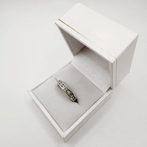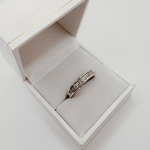 Alliance or blanc 18k sertie de diamants baguettes - 1/2 tour rail - 17 Diamants 0,60 carats