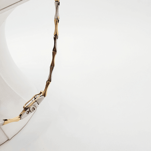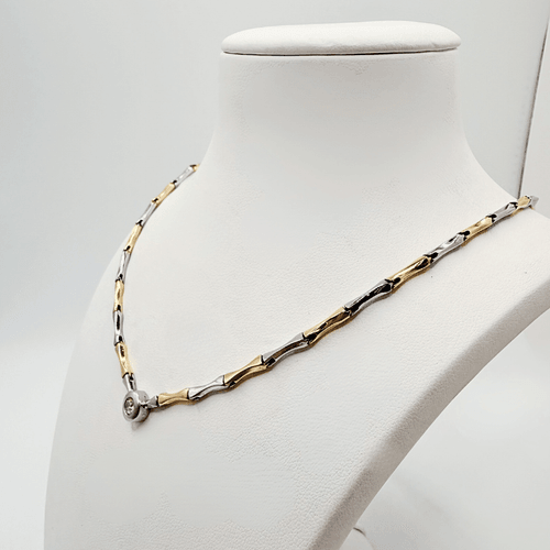 Collier or blanc et jaune sertie d'un diamant central taille Moderne 38 cm